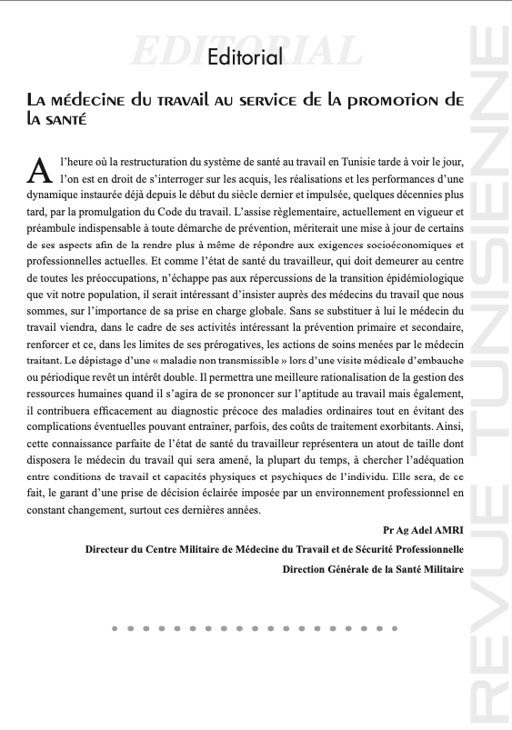 Revue Tunisienne de Pathologie Professionnelle et de l'Environnement